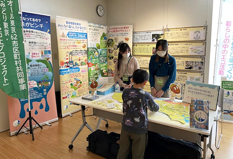 オール東京62市区町村共同事業「みどり東京・温暖化防止プロジェクト」では、東京62市区町村等が主催するイベント等を通じて、オール東京62共同事業のPR及び普及啓発展示を行っています。